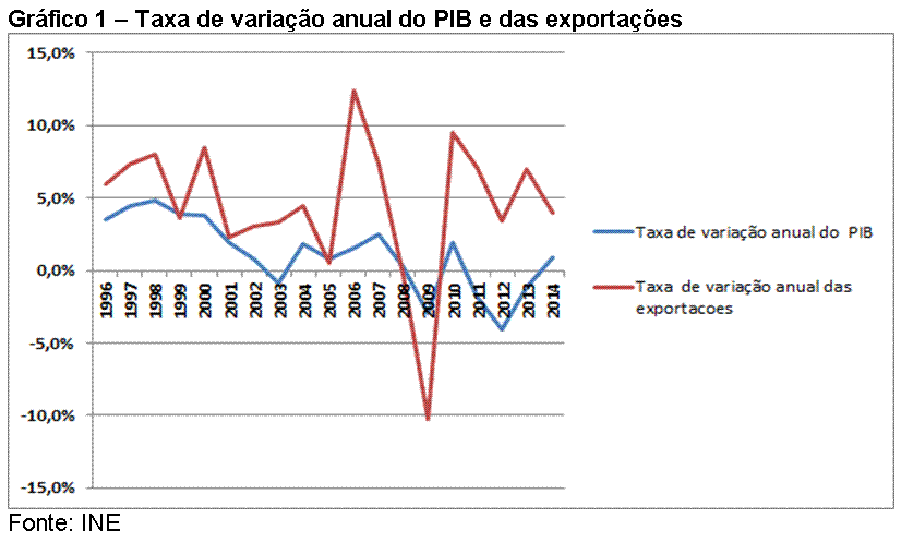 O gráfico 1, construído com dados divulgados pelo INE referente